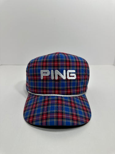 Vintage PING Golf Plaid 90s Golf Leather Back Hat