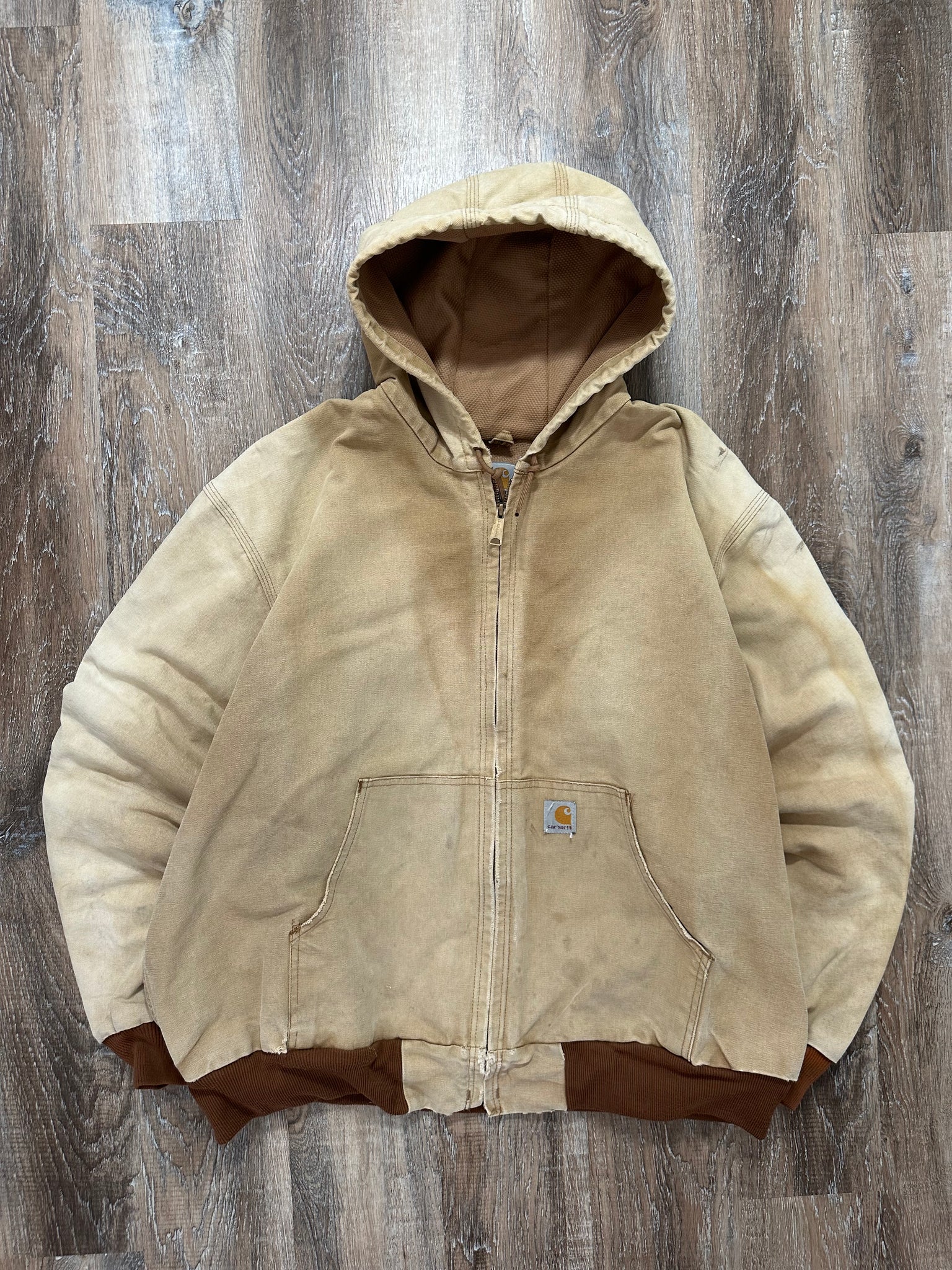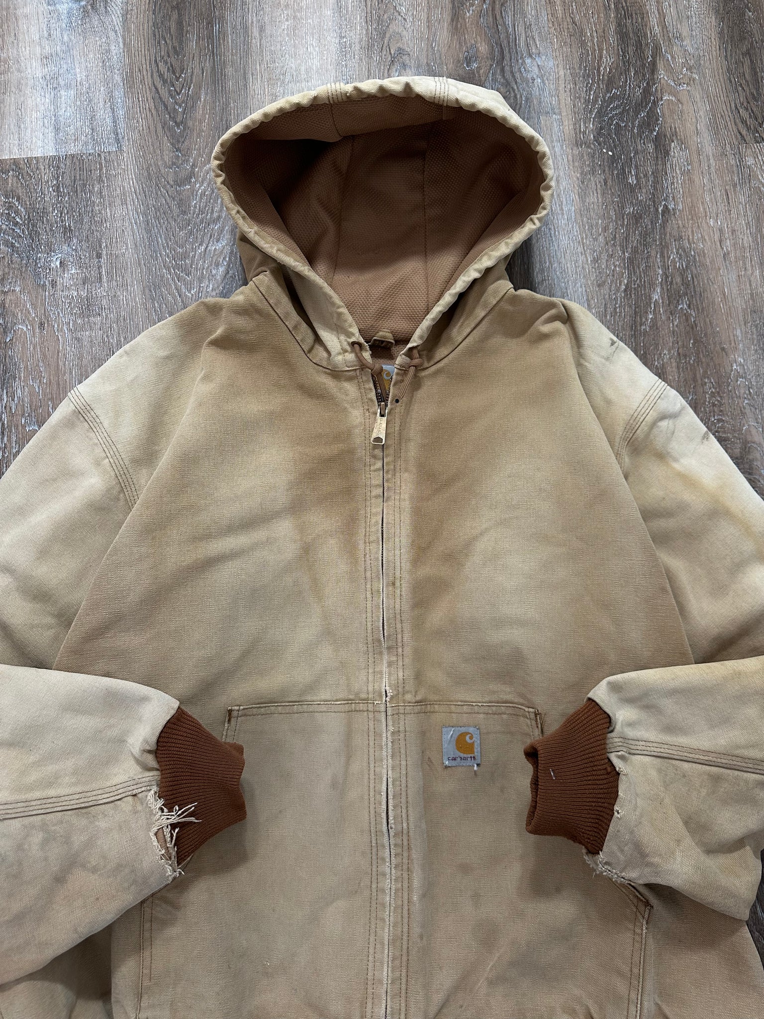 Vintage Carhartt Tan Canvas Workwear Hooded Jacket (XL)