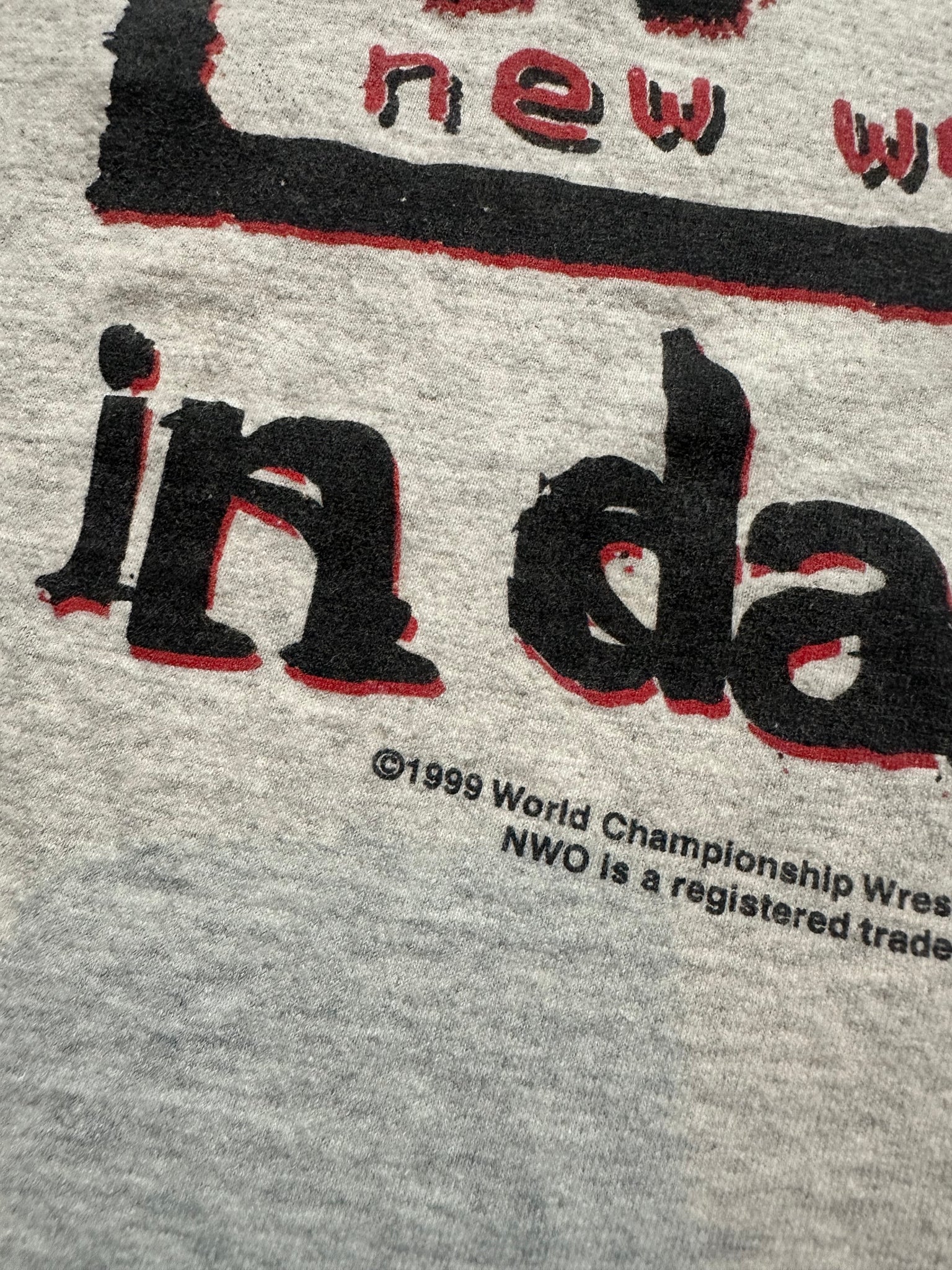 Vintage NWO New World Order In Da House 1999 WCW Wrestling T-Shirt (XL)