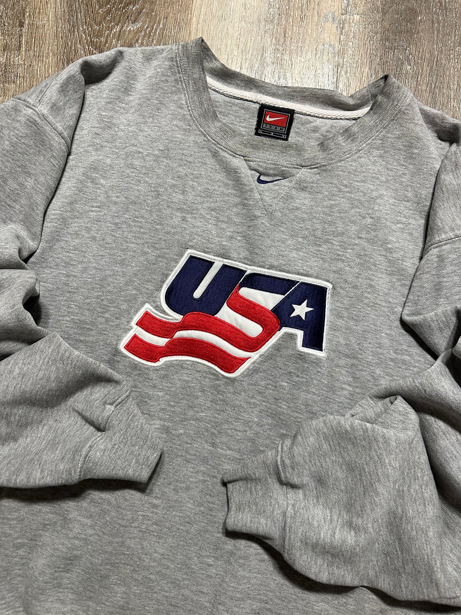 Vintage Team USA Hockey Nike Center Swoosh Gray Sweatshirt (L/XL)